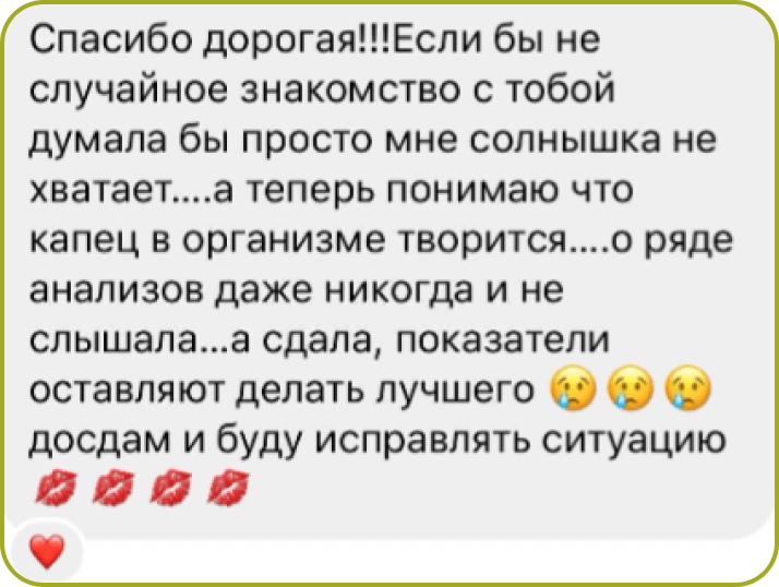 Убрали симптомы провалов с энергией, хронические приступы мигрени, нормализовали инсулин, убрали лишний вес, вернулся нормальный менструальный цикл, убрали вздутие в кишечнике, убрали хроническое недосыпание и надпочечниковую усталость, прошли высыпания на голове!